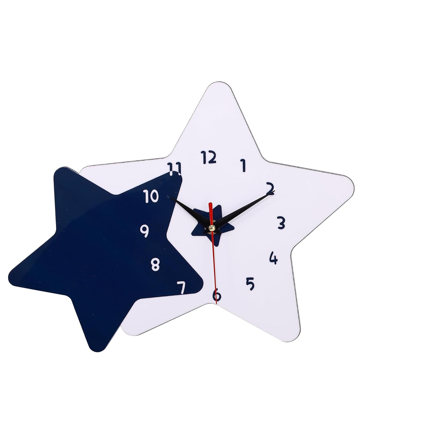 De’rons Decorative Silent Non-Ticking Cartoon Wall Clock for Kids Room Bedrooms Classrooms Playrooms Nursery School Wall Decor Washable Without Glass Clocks for Child Room Décor 26 x 35 Cm (Star)