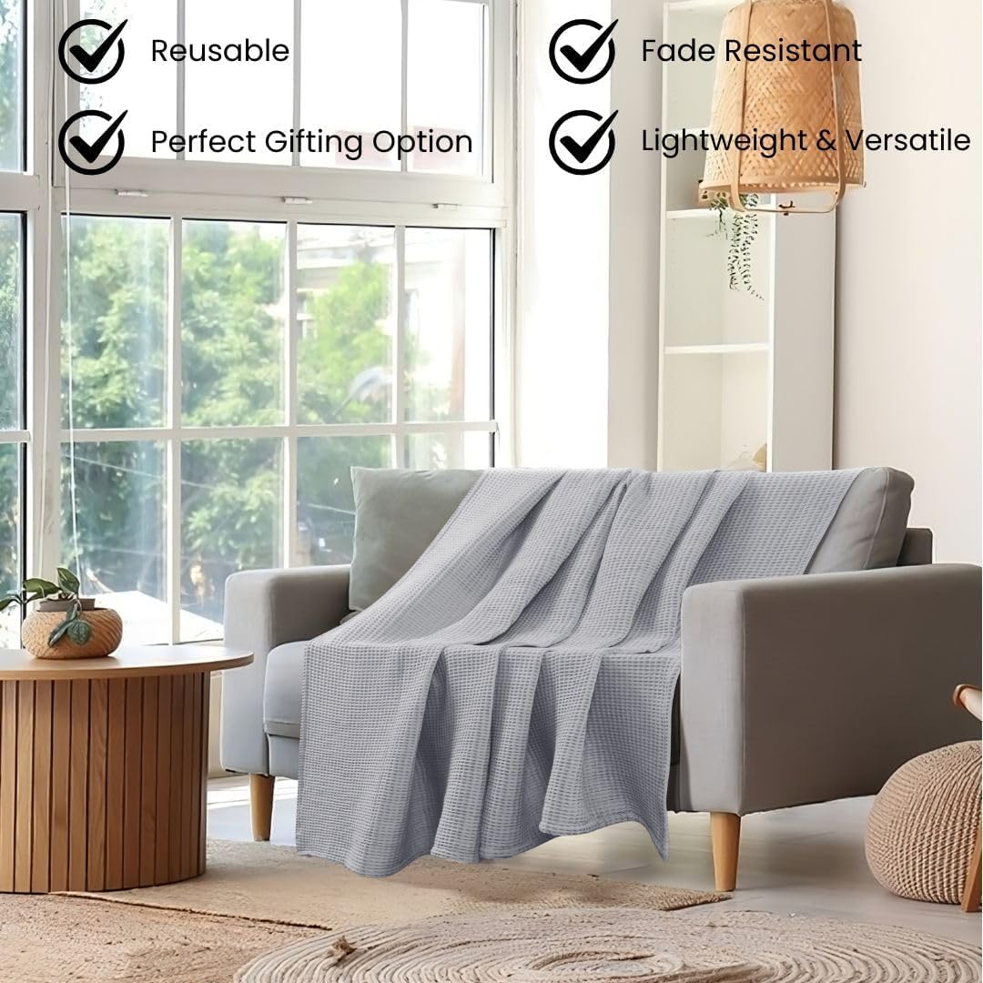 Whether draped over your bed or snuggled on the couch, our soft woven waffle blanket offers year-round comfort, making it a must-have addition to your bedding collection.