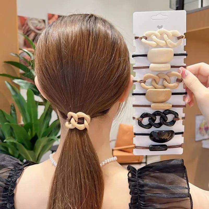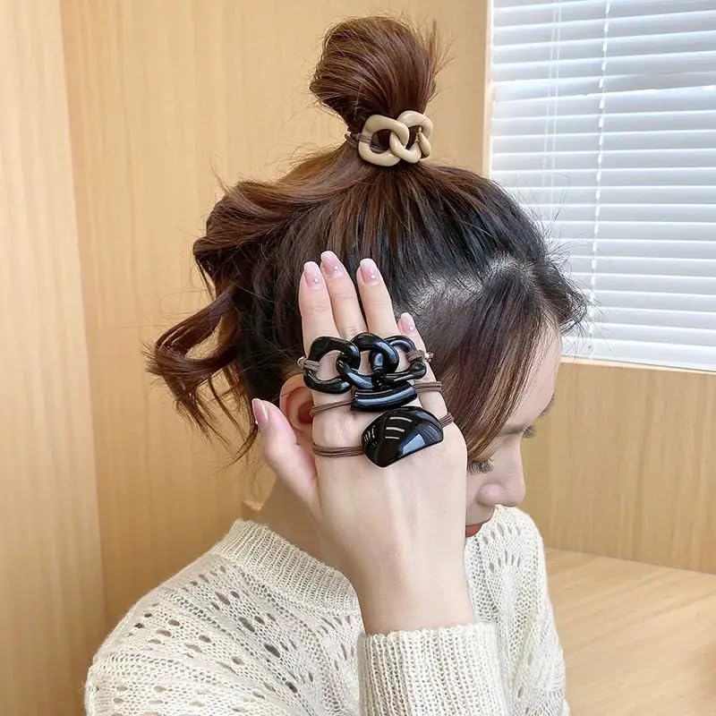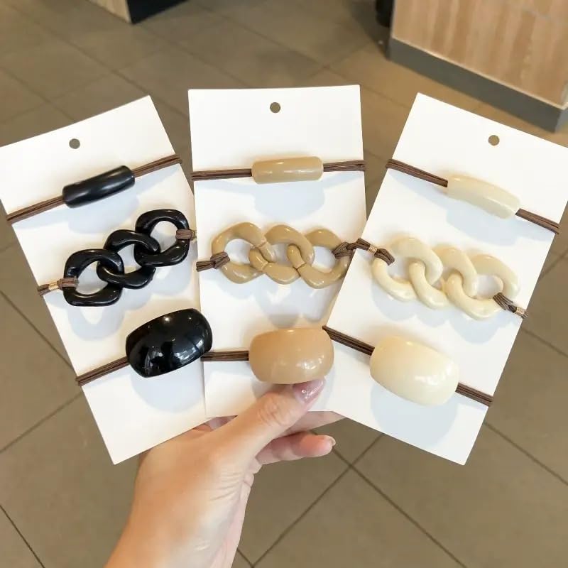 Stylish & Durable: Crafted with a chic geometric chain look, these rubber bands combine style and durability for daily wear.