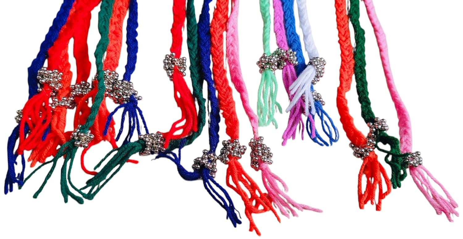 3, 4, 5 and 7 Plain Jhanjhari Latkan Strings (Multi-Coloured), enhance your Navratri appearance with our handmade boho hair accessories ponytail, crafted for girls and women of all ages who appreciate stylish casual vibes. Our boho hair strings (Parandi/Paranda) showcase exquisite braided tassels that serve as perfect hair extensions, hairbands, or scrunchies. They are ideal for complementing ethnic outfits or adding a touch of flair to everyday styles. Perfect for Navratri festivals, traditional events, casual outings, or to elevate your favorite looks. Embrace both tradition and trend with these versatile, vibrant braids and strings. Also known as Boho Hair Accessories Clips Tie Ponytail Pins Jewelry Hairband Parandi Paranda hair Extension.