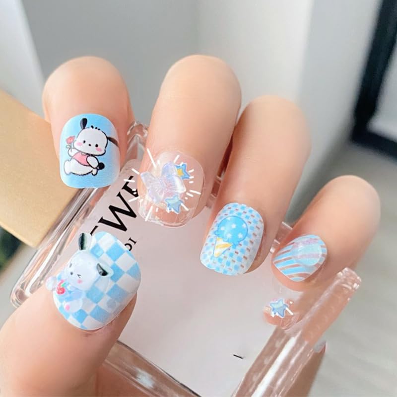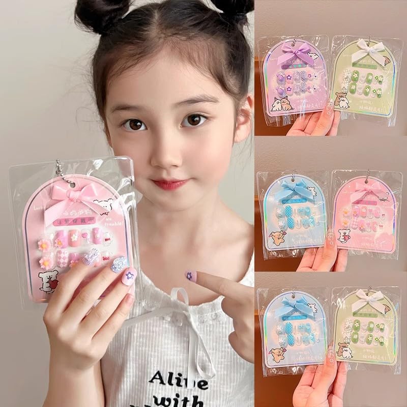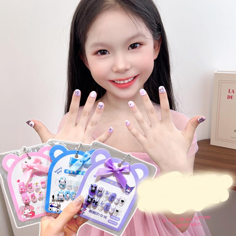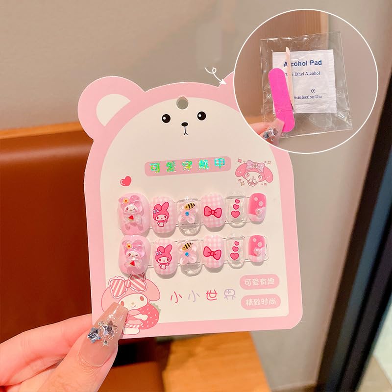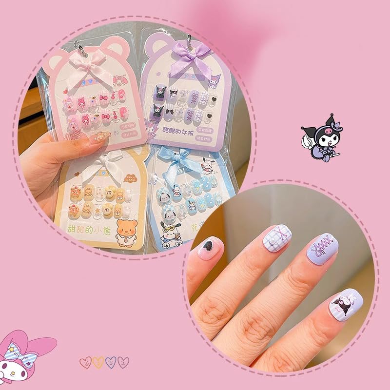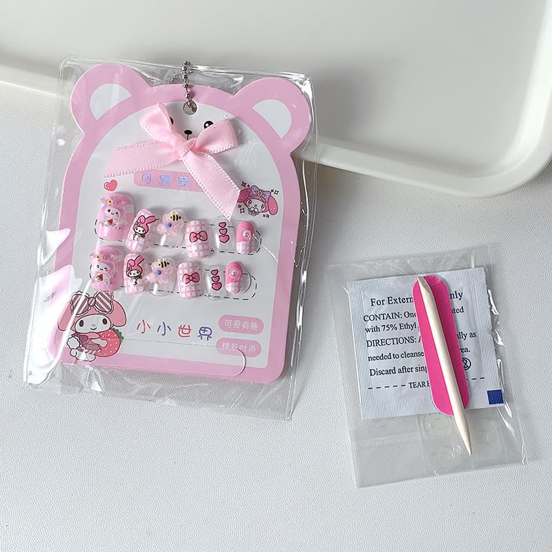 DORMITORRY Press on Nails for Kids, Cute Cartoon Fake Nails with Jelly Glue, Short Artificial Nail Art Kit for Girls, Reusable & Safe Nail Extensions for Easy DIY Manicure, 12 Pcs – Multicolor.