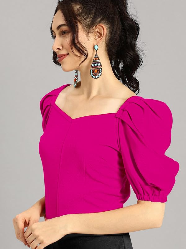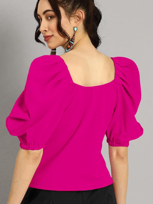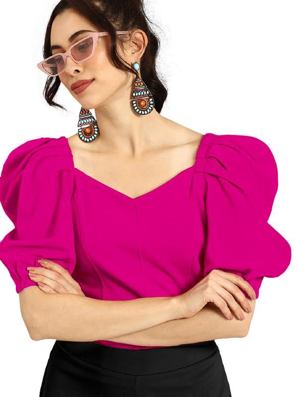 Dream Beauty Fashion Women’s Puff/Baloon Sleeves V-Neck Casual Top (Top-MG-1)