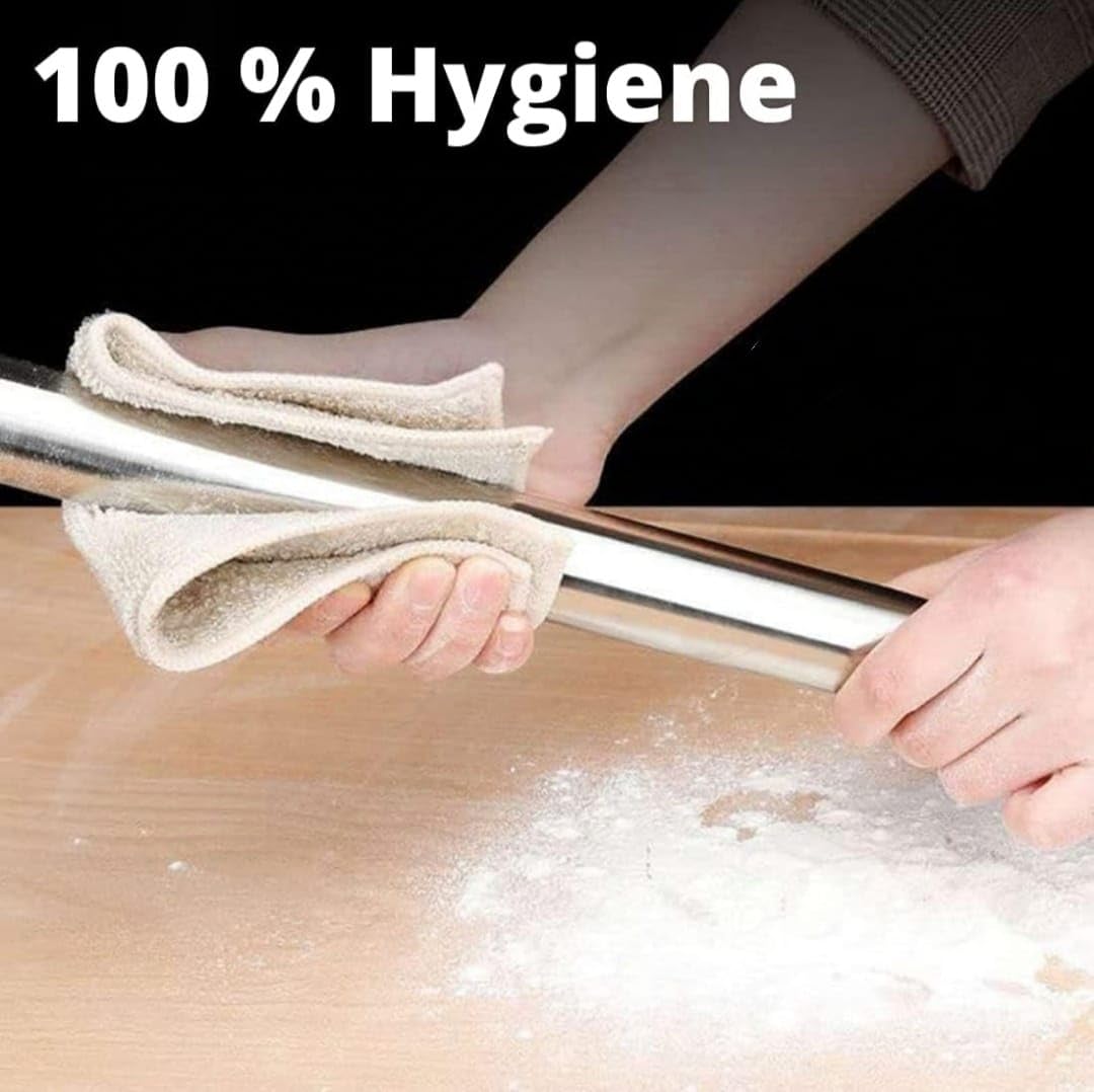 Non-Stick Magic: Forget the mess! Our smooth stainless steel surface prevents dough from sticking, saving you time and frustration. Keep your dough cool by freezing the rolling pin or warm it up for easy release. Perfect for pasta, pizza, pie, dough, chapatis, and fondant.