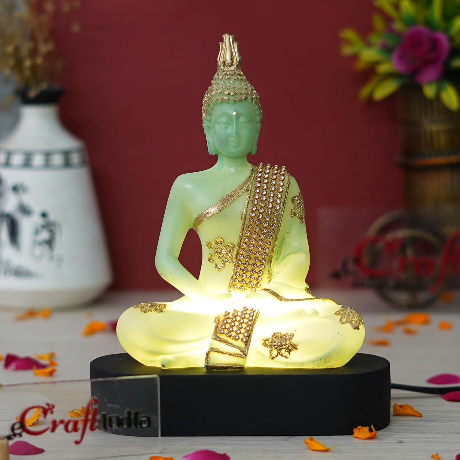 Package Content – One Green and Golden Polyresin Handcrafted Meditating Lord Buddha Statue