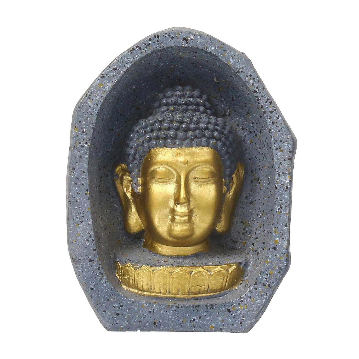 eCraftIndia Grey Golden Resin Lord Buddha Head Statue | Buddha Showpiece for Home Decor Living Room Car Dashboard Office | Gautam Buddha Idol Gift for Diwali Buddha Purnima Housewarming Birthday