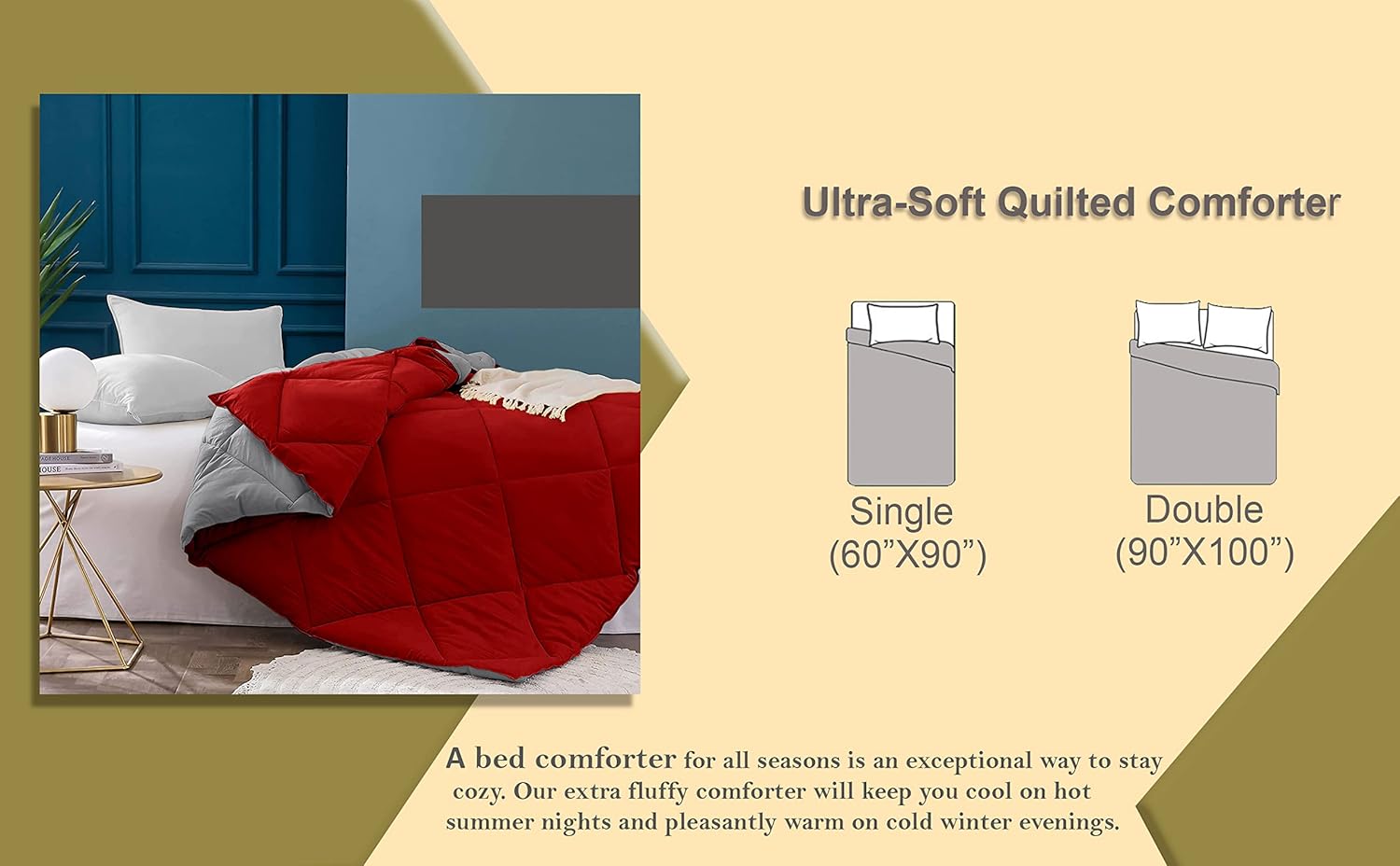 Multiple colors to choose from,you can choose solid or double sided colors with your own preference to match your beddings.Transform your bedroom with our comforter!
