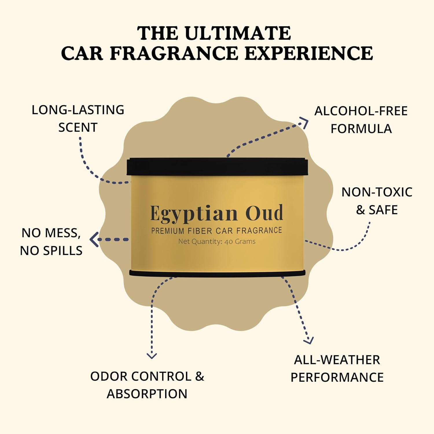 Indulge in the luxury of AuraFume Egyptian Oud Fiber Car Fragrance, a premium scent crafted with exquisite amber oud oil. This exotic fragrance creates a rich and opulent atmosphere, transforming every car ride into a sensory retreat.The alcohol-free formula offers a safe and eco-friendly alternative, perfect for those who prioritize quality and sustainability. With advanced fiber technology, AuraFume Egyptian Oud provides up to 60 days of continuous freshness, making it ideal for daily commutes or long journeys.Engineered for all-weather performance, this car fragrance ensures consistent scent release even in extreme temperatures. Compact and lightweight, the 40g design blends effortlessly into your car interior, offering understated elegance with powerful results.Choose AuraFume Egyptian Oud Fiber Car Fragrance for a truly luxurious and long-lasting driving experience.