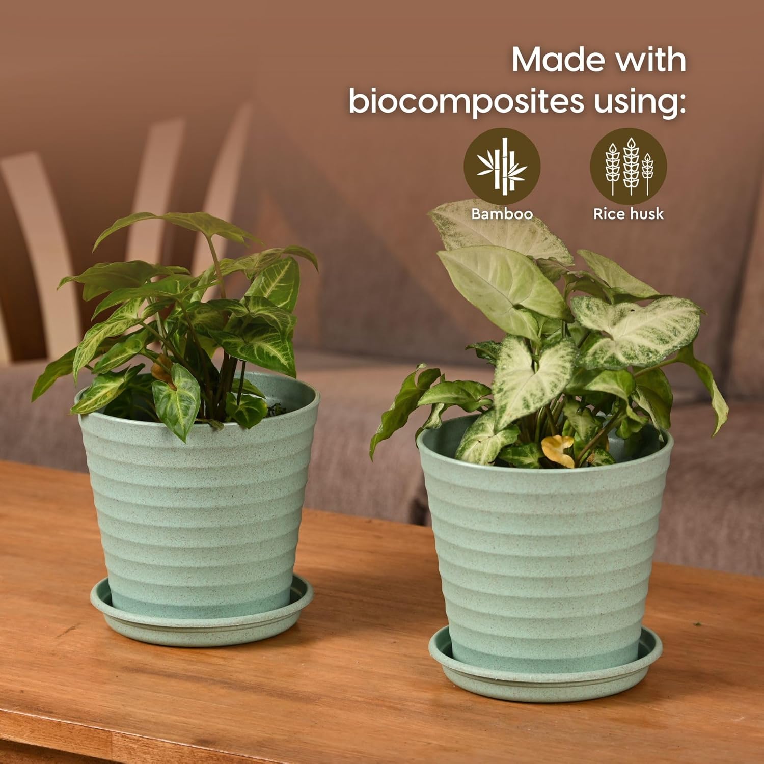 Our planters are crafted from premium bamboo fiber and rice husk biocomposites, providing excellent strength and stiffness. They are UV stabilized, ensuring a longer lifespan for both indoor and outdoor use.