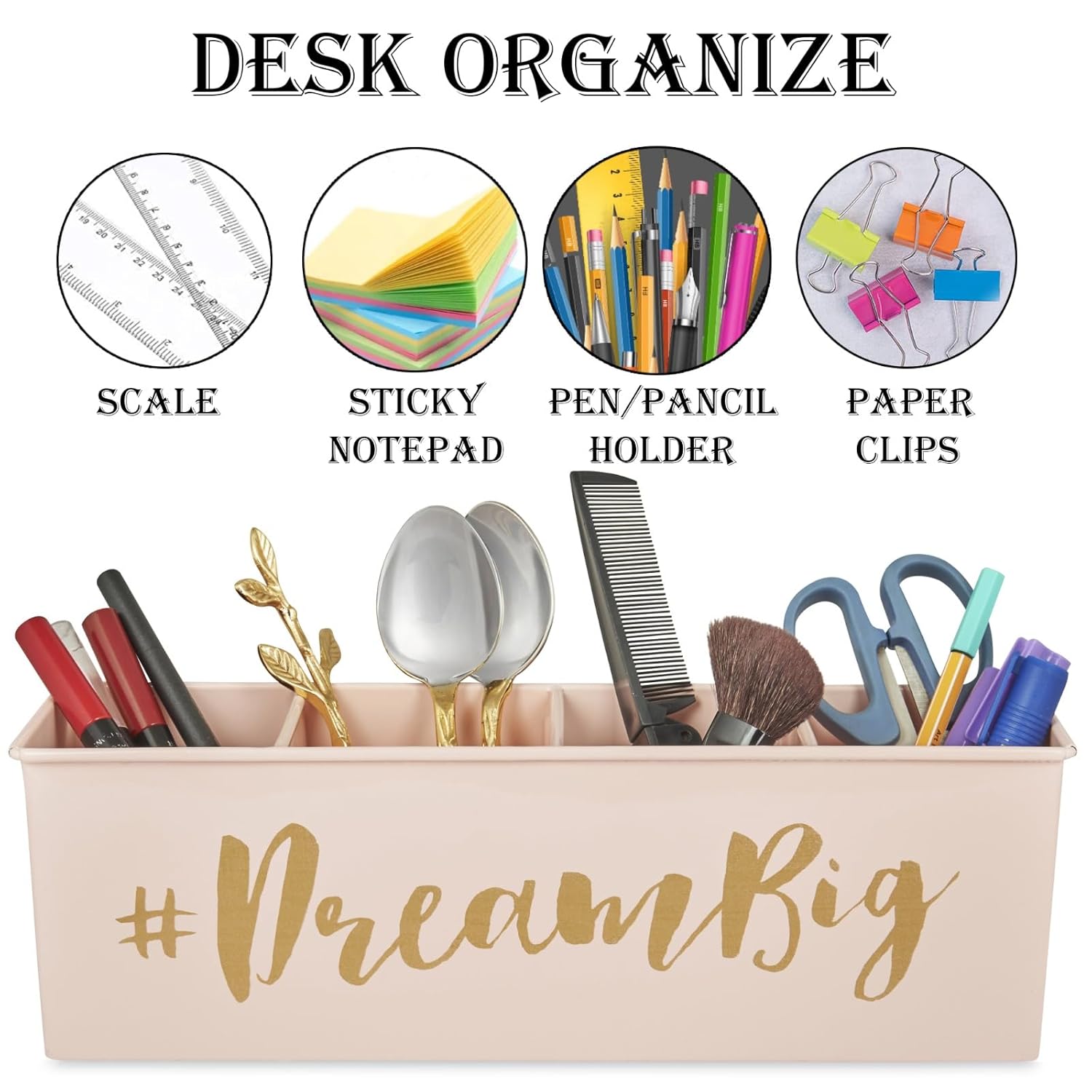 Stylish and Motivational Design: With its unique off-white color and motivational tag, this desk organizer adds a stylish, inspirational element to your workspace. It complements a wide range of office and home decor, enhancing the look and feel of your desk.