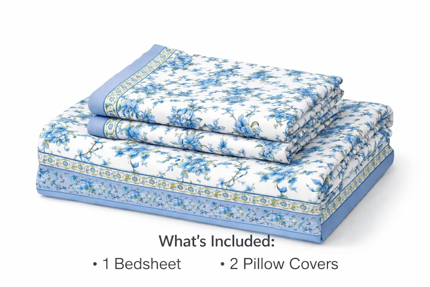 ElanorHomes Pure Cotton King Bedsheet | 90×108 Inches | 2 Pillow Covers