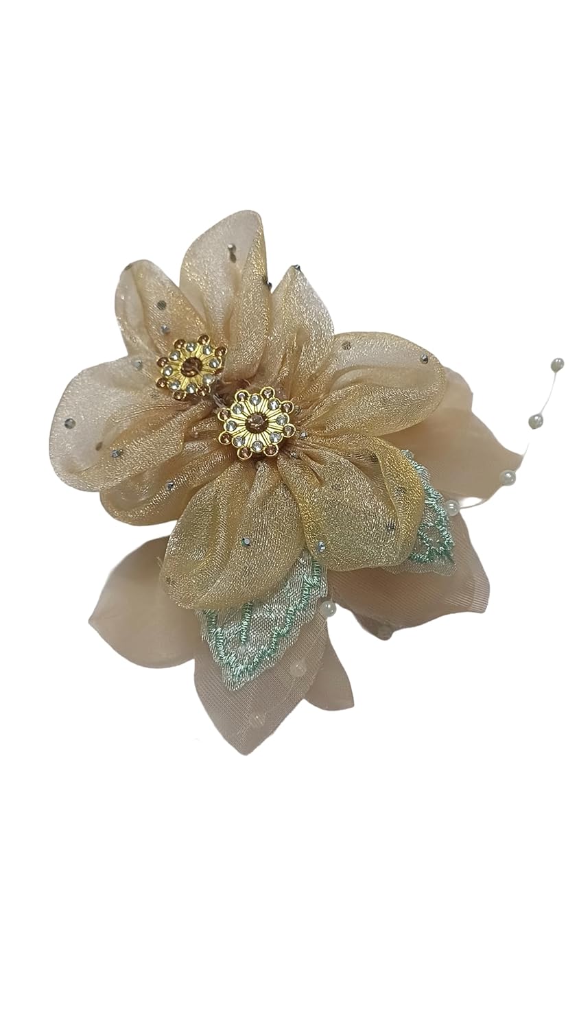 🌸 Exquisite Handcrafted Design – Each floral hair clip is intricately handcrafted using soft organza, net, satin petals, and glittery embellishments, giving a delicate, elegant look perfect for any special occasion or daily use.