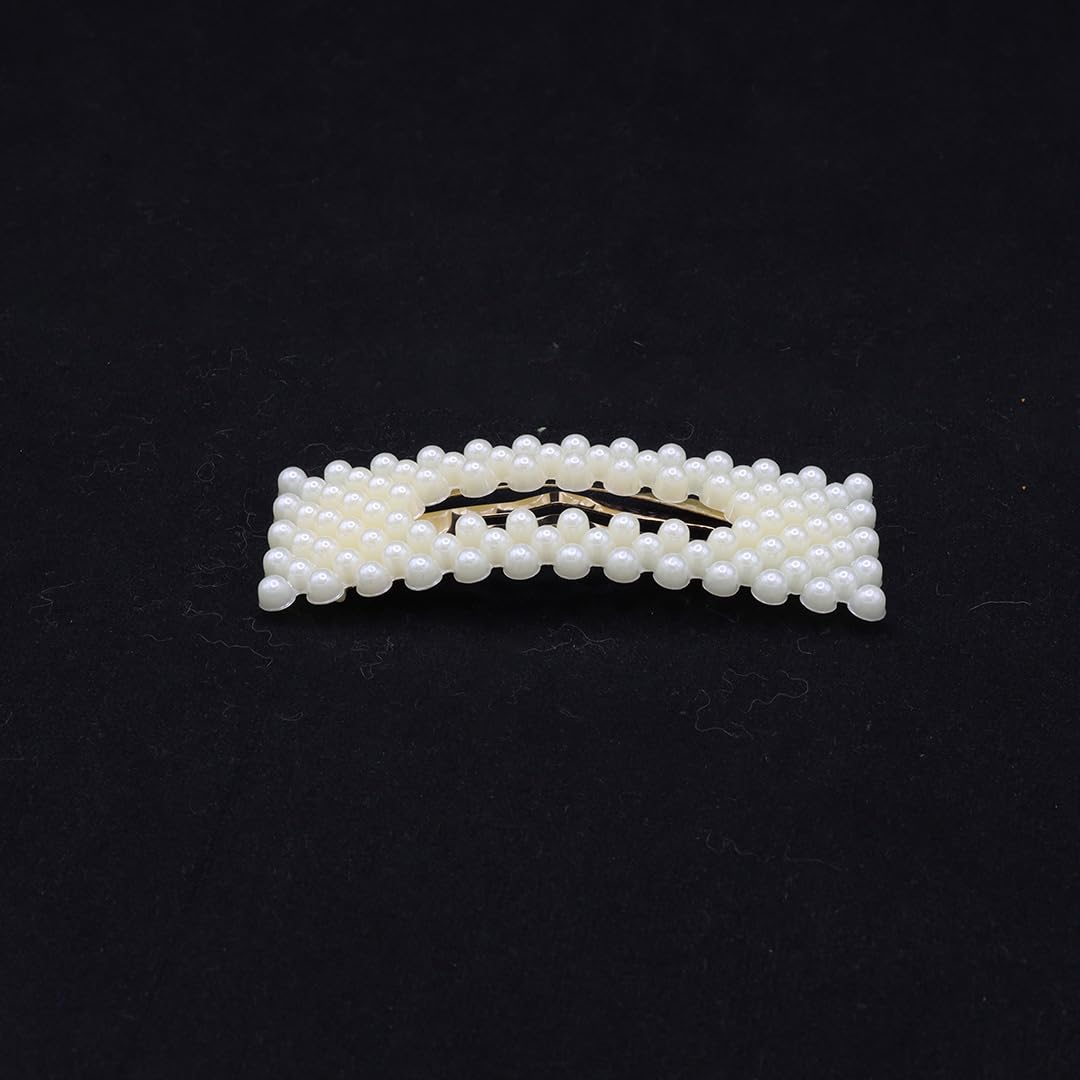 ELEGANT DESIGN: Rectangular hair clip featuring a luxurious array of white faux pearls arranged in a sophisticated grid pattern on a gold-toned metal base