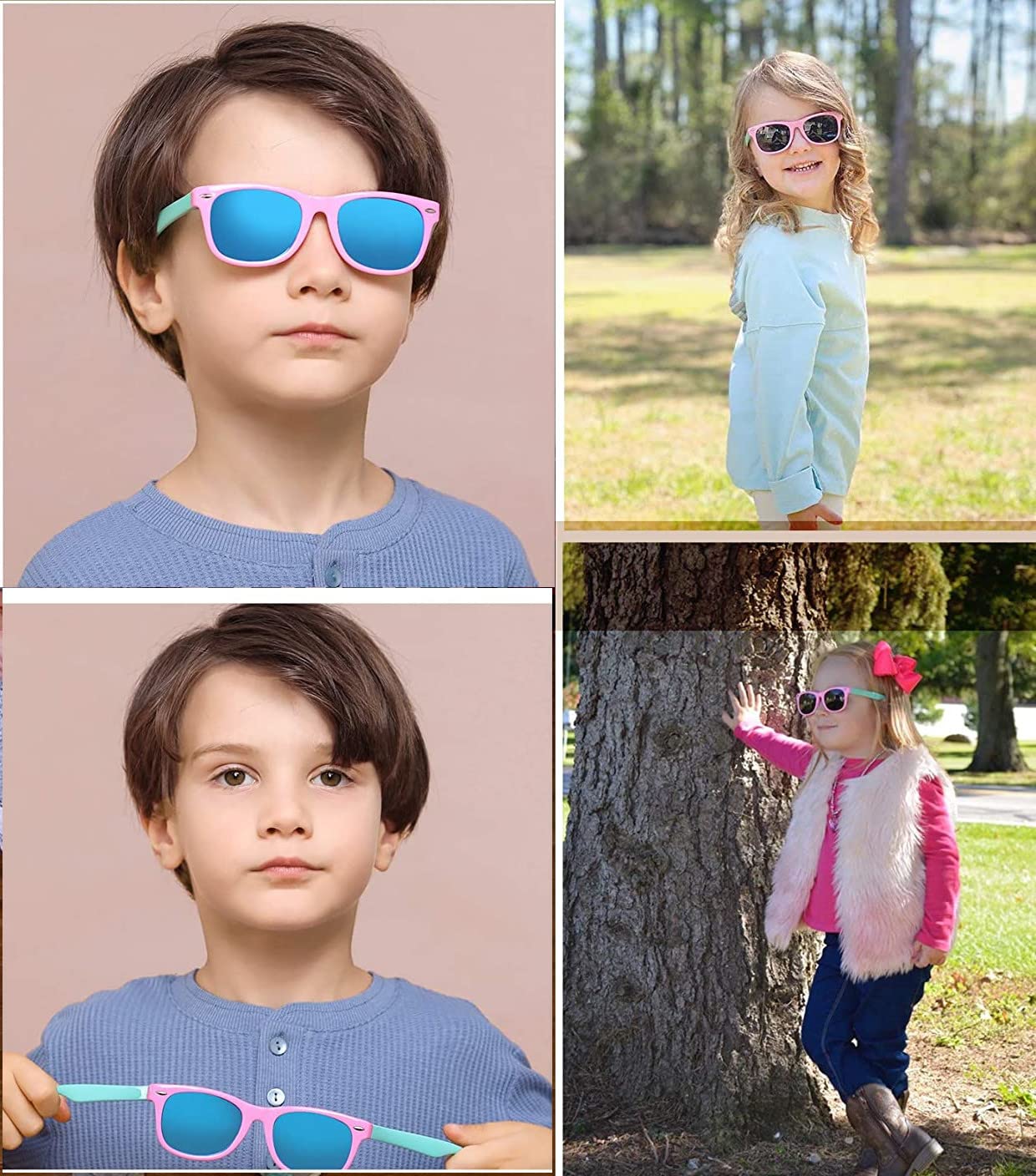 SOFT SILICON AND UNBREAKABLE MATERIALS – With this revolutionary soft silicon and unbreakable materials, this polarized kids sunglasses frames perfectly resolve the breaking issues, give your children a comfortable yet safe wearing experience. FREE carrying pouch and microfiber cleaning cloth included.