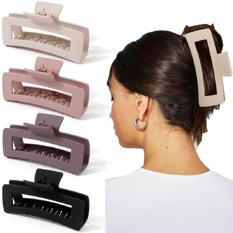 Extra-Large Rectangle Claws: Specially crafted for thick, long hair, these jumbo clips provide the coverage and grip you need to hold large sections of hair in place without slipping.Non-Slip, Strong Grip: The tight, secure hold ensures that your hair stays exactly where you want it, from morning until night-perfect for busy days or active lifestyles.Matte Color Finish: Elegant and understated, the matte finish gives these clips a sophisticated, timeless appeal, making them the perfect accessory for any occasion.Durable & Gentle on Hair: These clips are built to last, with a strong but flexible design that won’t damage your hair, preventing breakage or tugging.Versatile and Practical: Ideal for styling your hair in a sleek, messy bun, or half-up hairstyle, these clips are as functional as they are fashionable.Assorted Colors: Each set comes with two complementary colors, giving you the freedom to mix and match with your wardrobe or mood.
