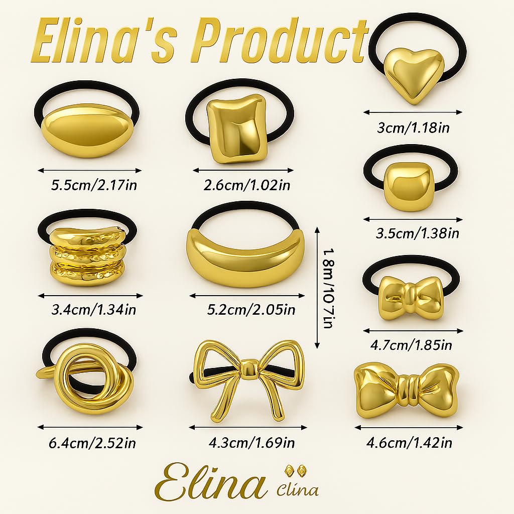 Elina Metal Hair Ties Ponytail Holder Cuffs for Girls & Women, Glossy Elastic, Geometric Design, Head Accessories Fashion Trendy Celebrity Rubber Bands (Gold Color)(Pack of 3 Pcs Random)