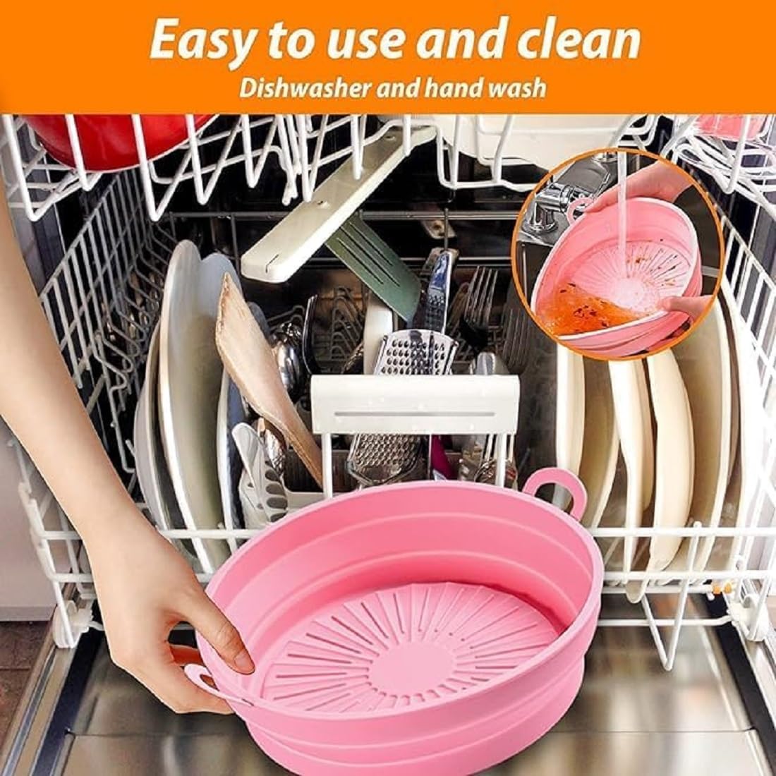 【Multiple Uses】The silicone air fryer liners can be applied for baking, oven, air fryer, microwave, frying, steamer, roasting or serving food, suitable for home baking, BBQ, camping,summer party, and so on.