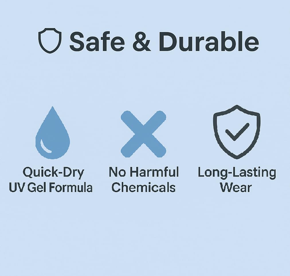Safe to use on nails : Free from Toluene, DBP, Camphor and Formaldehyde