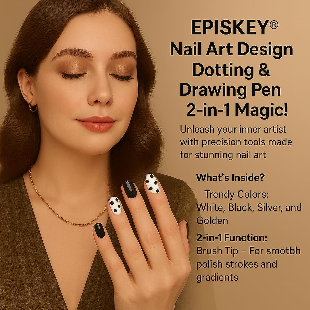 EPISKEY® Nail Art Design Dotting Painting Drawing UV Polish Brush Pen Tools Set Kit Nail Art Pack Of 2 (White Black) (NAIL ART WB)