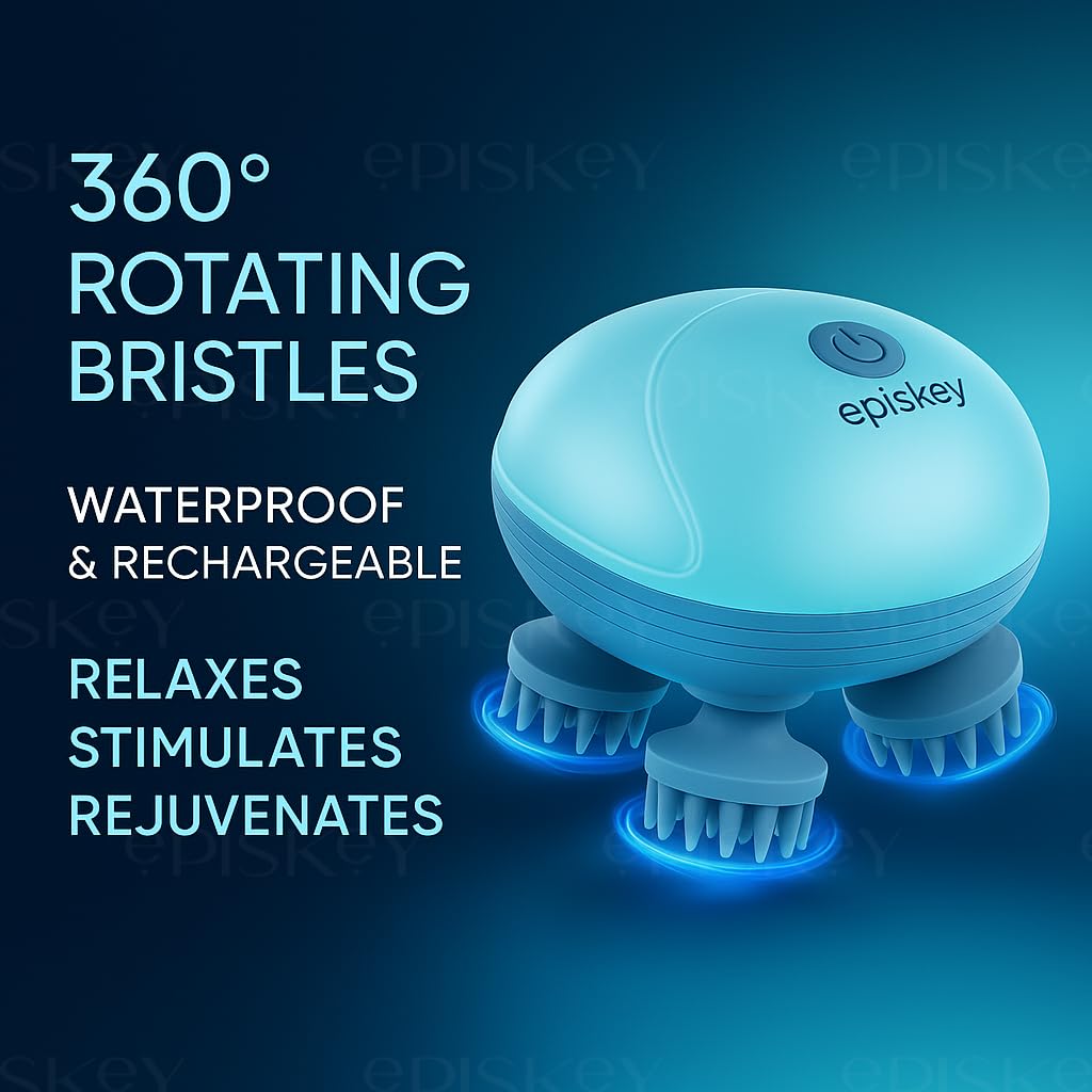 4-HEAD KNEADING MASSAGE: Four rotating heads with ~96 soft silicone nodes gently mimic fingertip pressure to relax the scalp and melt away everyday tension.