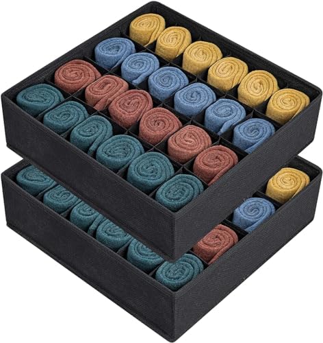 Space-Saving Design: Eranqo socks organizer (Pack of 2) with 24 cells, collapses for efficient storage in closets, wardrobes, and drawers.