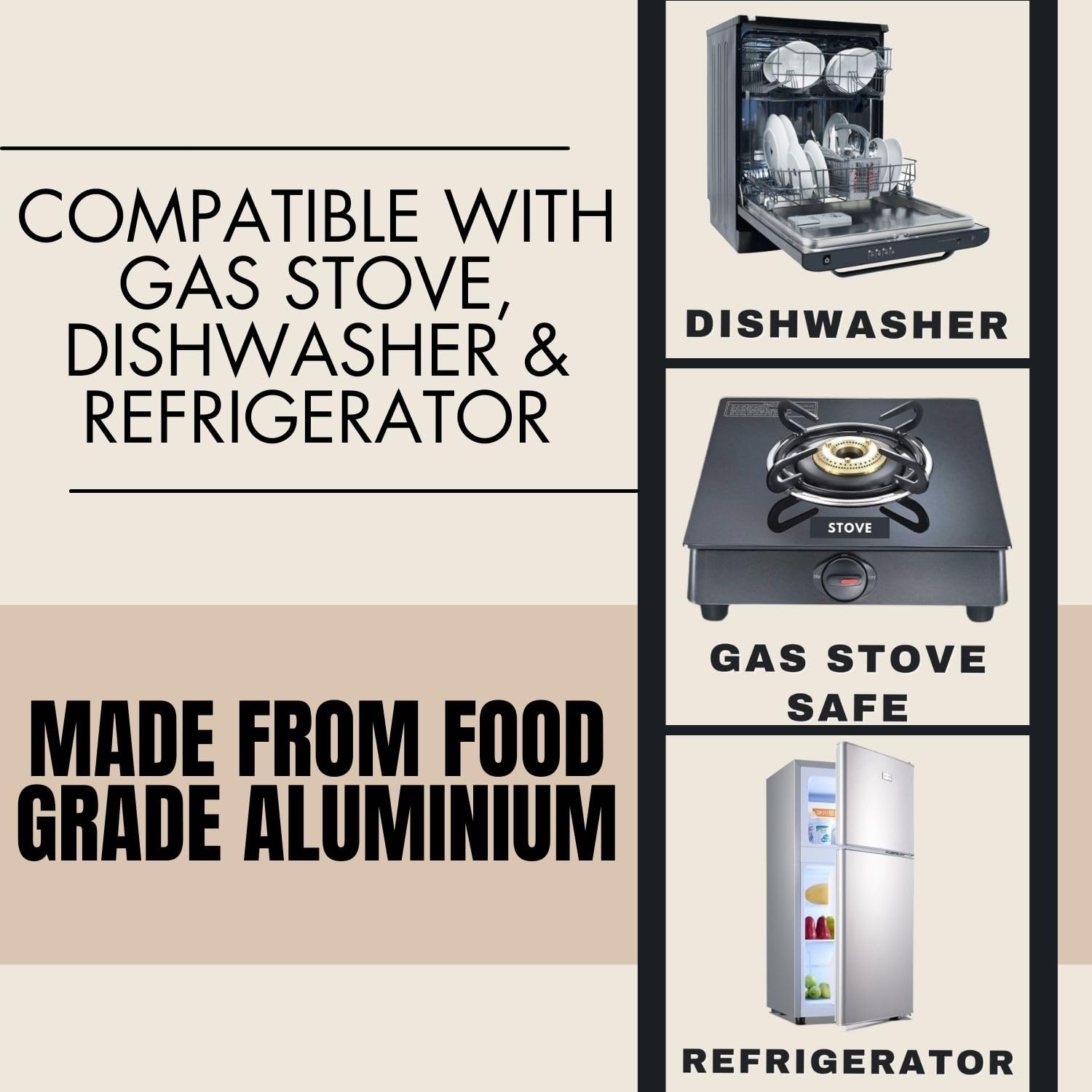 ✅ Prevents Burning and Sticking: Made from food grade virgin aluminum which provides a good buffer between the heat source and the food,so the food does not burn or stick.