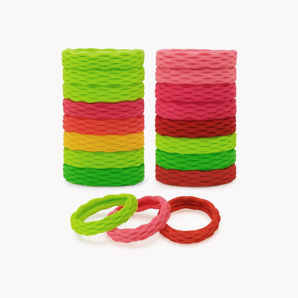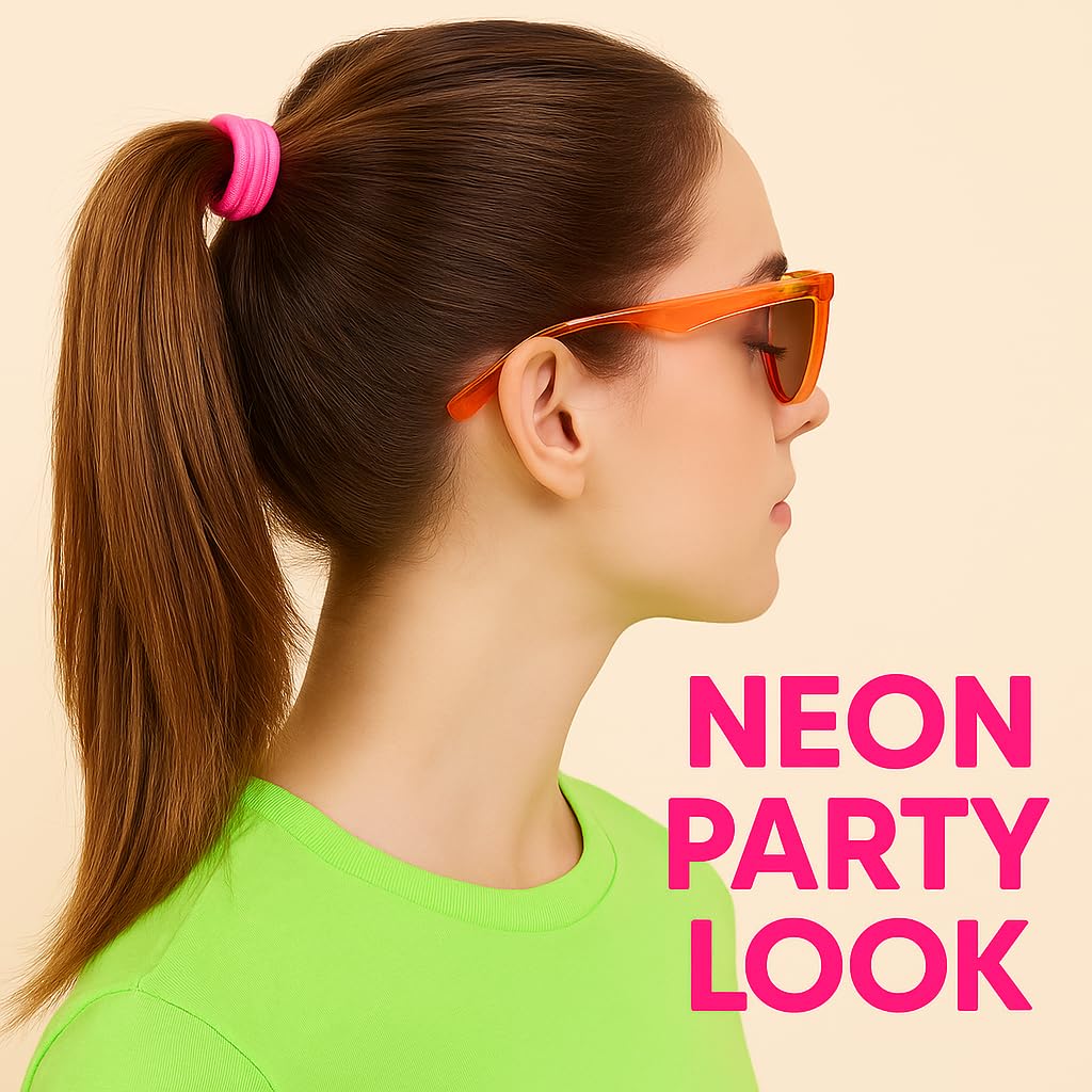Party-Perfect Pop of Color – 20 seamless neon hair ties in bold shades of pink, red, orange & green to match fun outfits and special occasions.