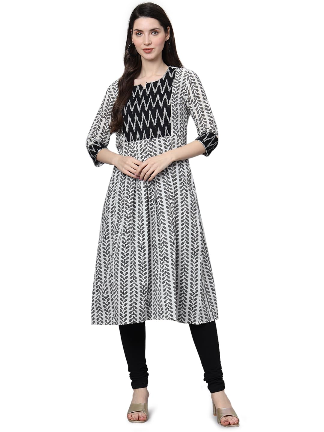 Women’s Jaipuri Cotton A-line White & Black Color Printed Kurta
