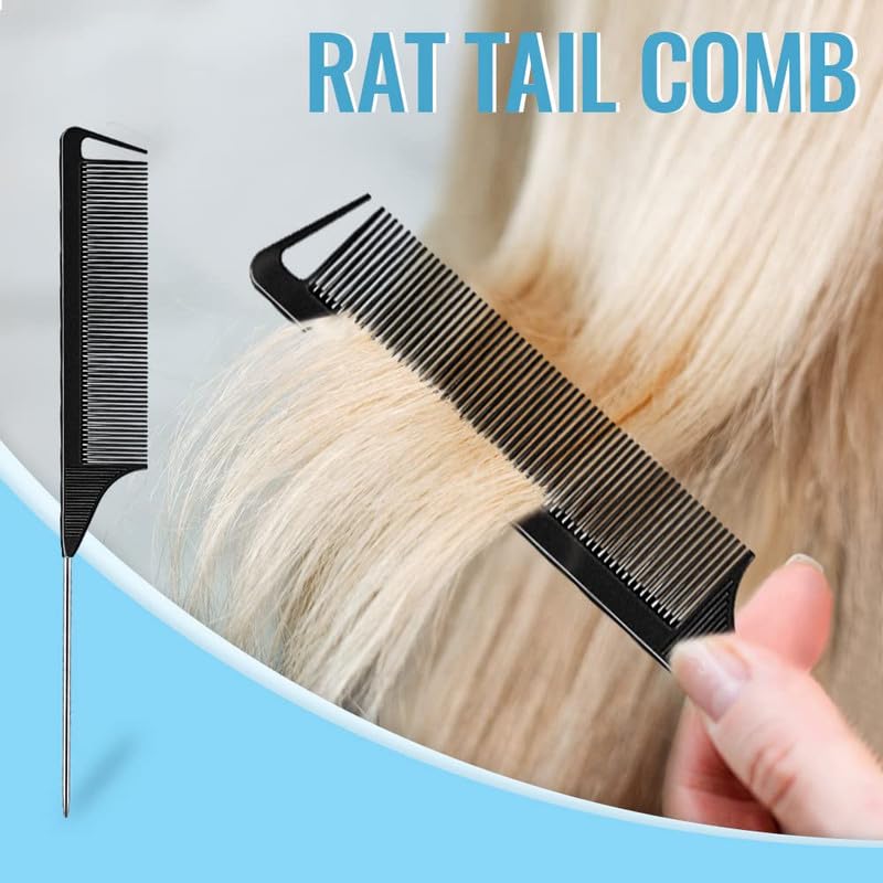 Package: Value hair tail tool set includes a pair of hair loop tool, a black rat tail comb and 1000pcs black hair rubber bands(500pcs medium sizeand 500pcs small size).