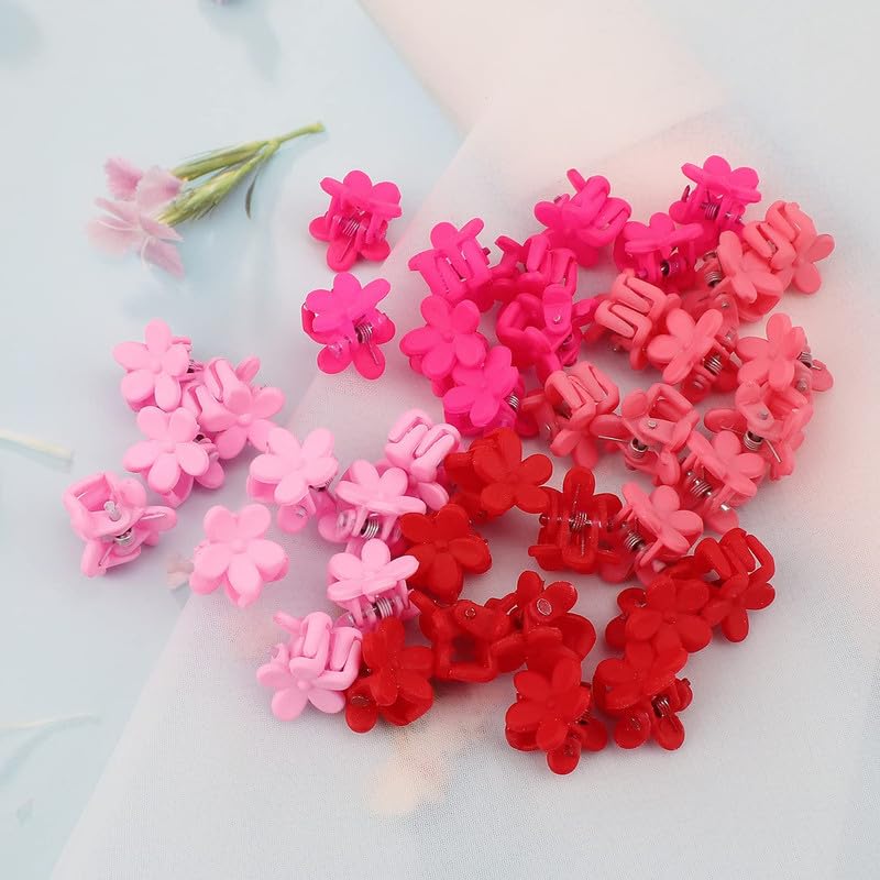 FAMEZA 20 PCS Small Hair Clips for Girls, Mini Hair Claw Clips for Women, Tiny Hair Clips with Flowers, Hair Accessories for Girls, Plastic Small Claw Hair Clips with 10 Colors (multicolor)