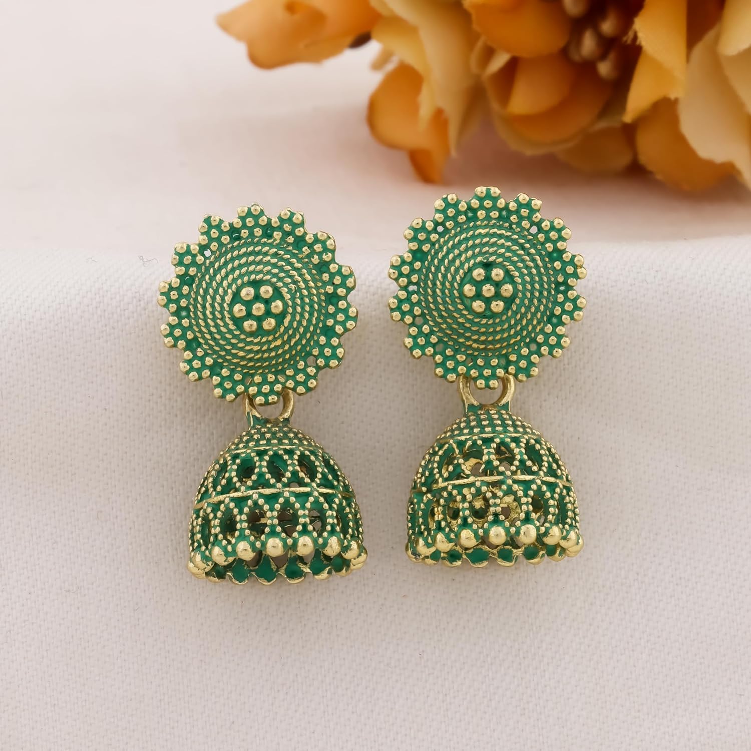 Fancy Fashion Jewellery Jhumka meenakari oxidised kundans flower Earrings for Women Girls Ladies Wife South Indian Traditional Earrings Set stylish small Jhumki Combo pack OF 12