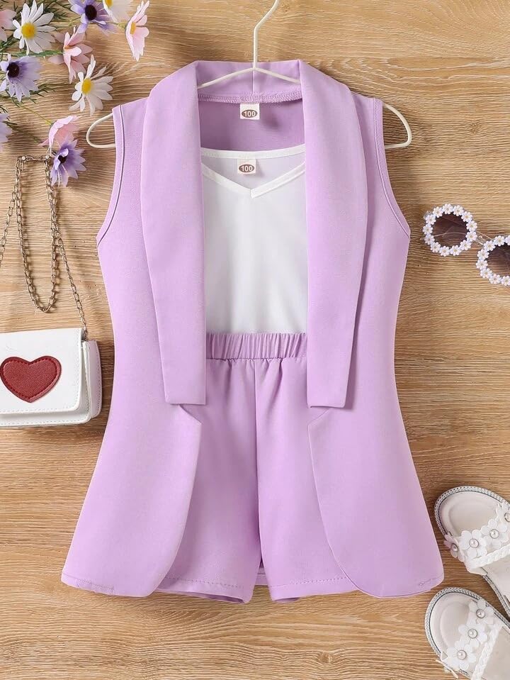FARBIG WEAR Girl’s Solid Jacket with Top and Shorts Set| Girls Clothing Set| Girls Co-ords Set| Jacket and Shorts set| 3 Piece Set