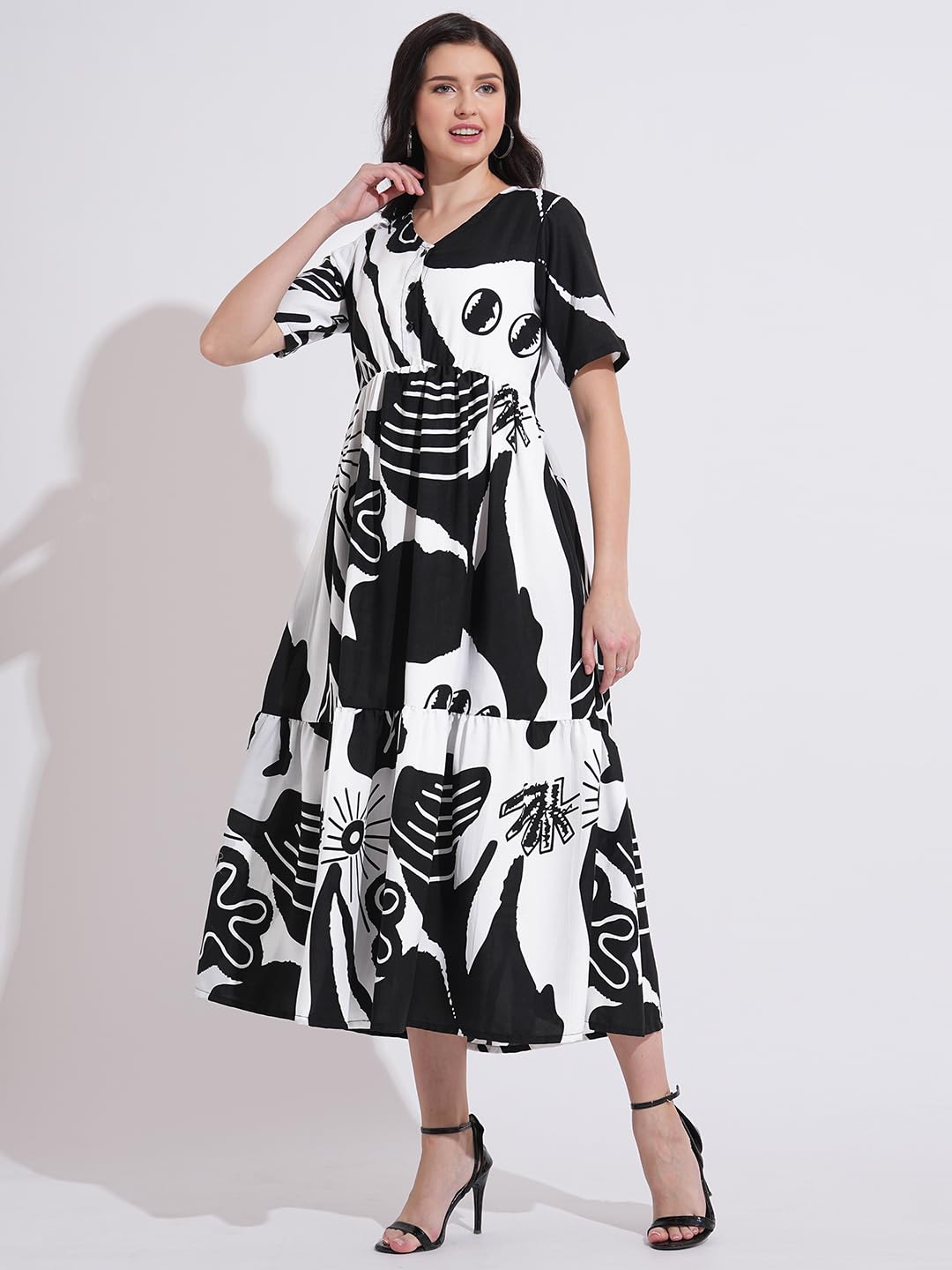 Fashfun Women’s Printed Tiered Dress with V-Neck