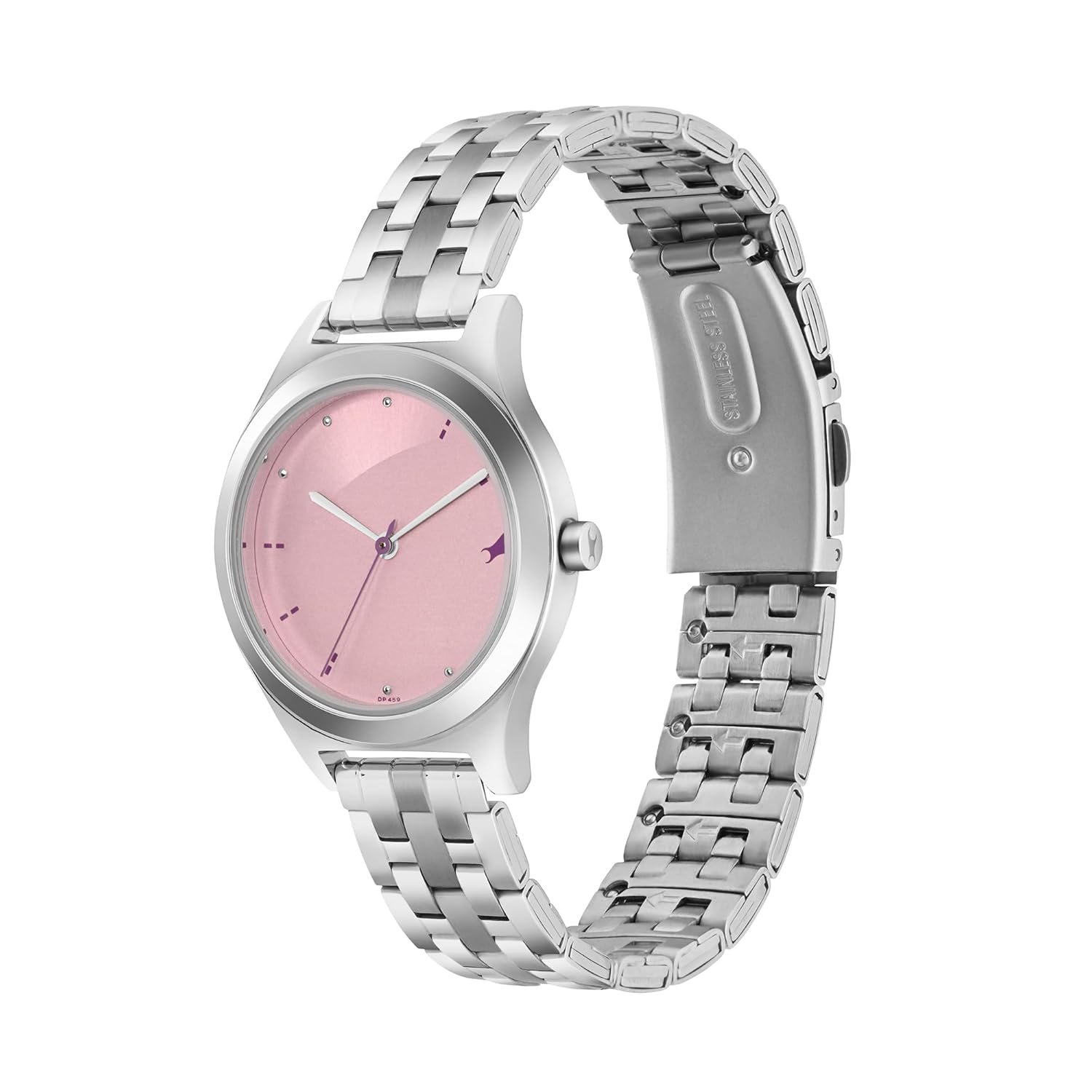 Be right on trend with Fastrack Urbano range Case dimension: 32.3 X 40 X 7.25 Water resistance: 3 ATM / 30 m | Round case | Silver stainless steel bracelet watch| Stainless steel back cover | High precision quartz analogue movement | 2 years warranty period