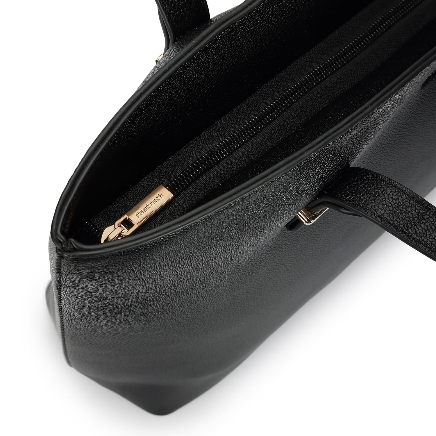 Fastrack PowerCarry Tote for Women, Semi-PU Faux Leather Tote with Zip Closure and Comfy Strap, Spacious 15.12L Handbag for Office, College, or Casual Outfits, Large Tote Bag for Women