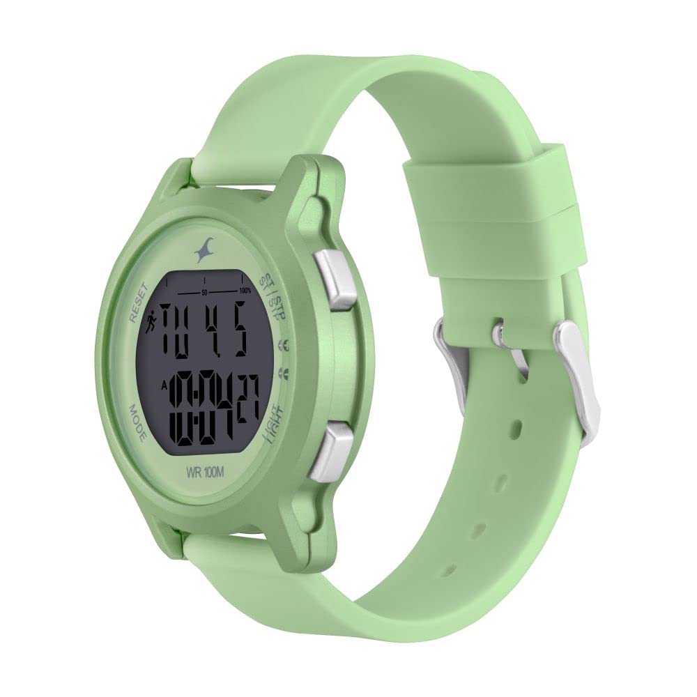 Fastrack Street Line Digital Dial Green Silicone Strap Watch for Girls-NR68027PP01