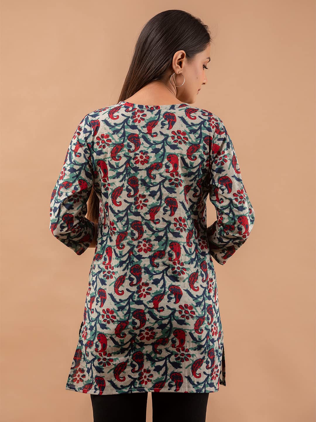 Feranoid Women Cotton Printed Straight Short Kurti