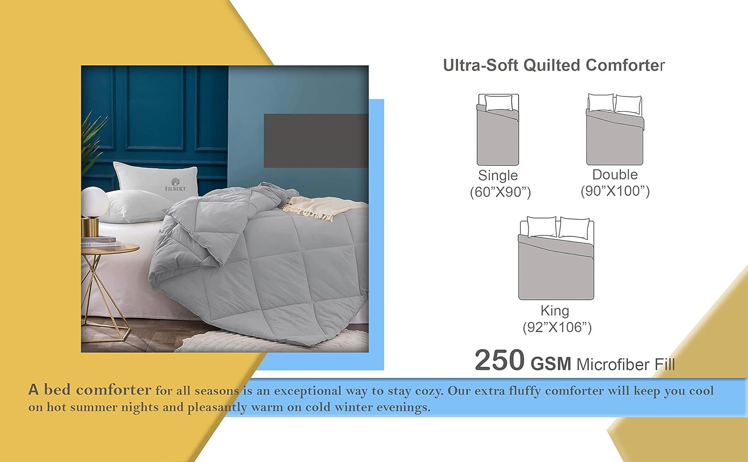 Product Details :- Microfiber Fabric Down Alternative Luxury For All Season & 250 GSM All Season Comforter (90″ x 100″ Inches/228cm x 254cm) – Double Bed|Silver/Teal