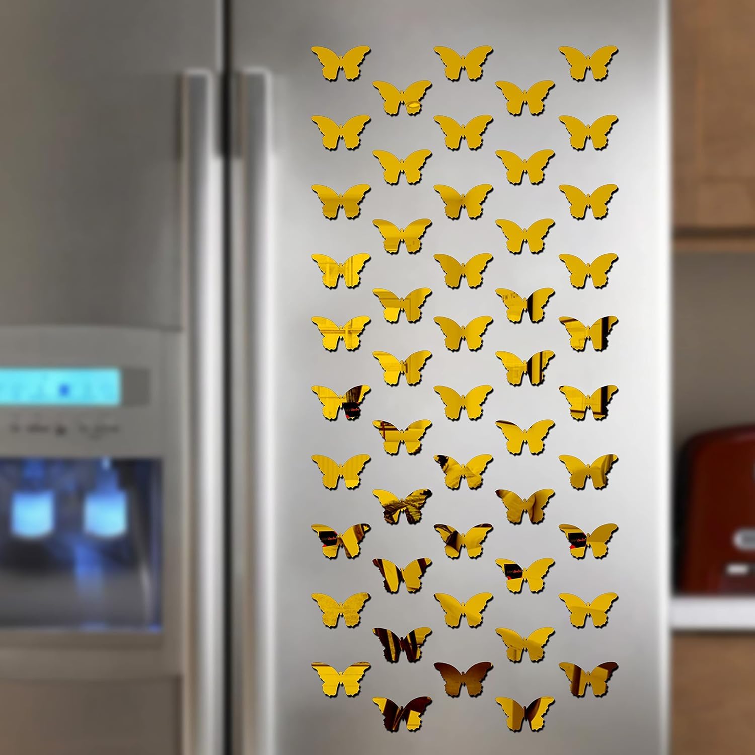 Fliptic – Butterfly 40 Golden Decorative Mirror Stickers for Wall, Wall Mirror Stickers, 3D Acrylic Stickers Wall Stickers for Hall Room, Bed Room, Kitchen Living Room Kids Room (Golden)
