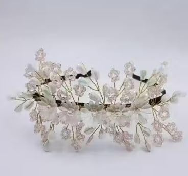 Add a touch of ethereal elegance to your special occasions with this exquisite floral crystal pearl hair comb. Crafted with intricate attention to detail, this white-hued hair accessory features a delicate arrangement of crystals and pearls in a captivating floral design. Perfect for brides seeking that magical finishing touch to their wedding ensemble, or for anyone wanting to elevate their formal attire. The versatile design complements various hairstyles, from elegant updos to flowing locks, making it an ideal choice for weddings, parties, proms, or any celebratory event. The secure comb structure ensures the accessory stays firmly in place throughout your special moments. This hair ornament strikes the perfect balance between classic sophistication and contemporary charm, making it a timeless addition to your accessories collection. Whether you’re walking down the aisle or attending a glamorous soirée, this hair comb will add that perfect sparkle to your look.