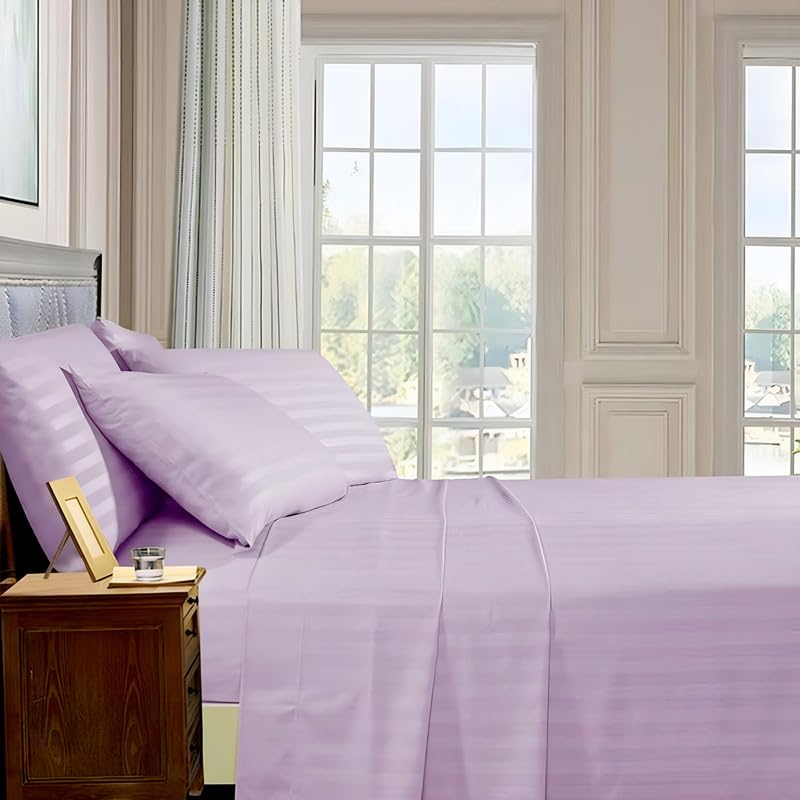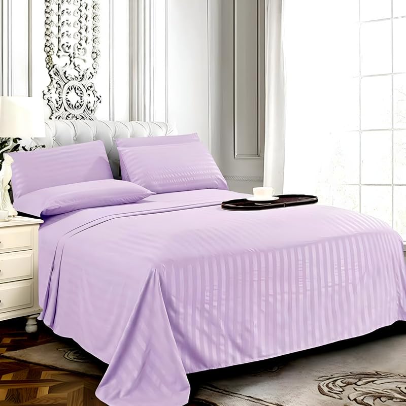 Florida Striped Polycotton Double Bedsheet 228×245 cm with 2 Pillow Covers – Lavender