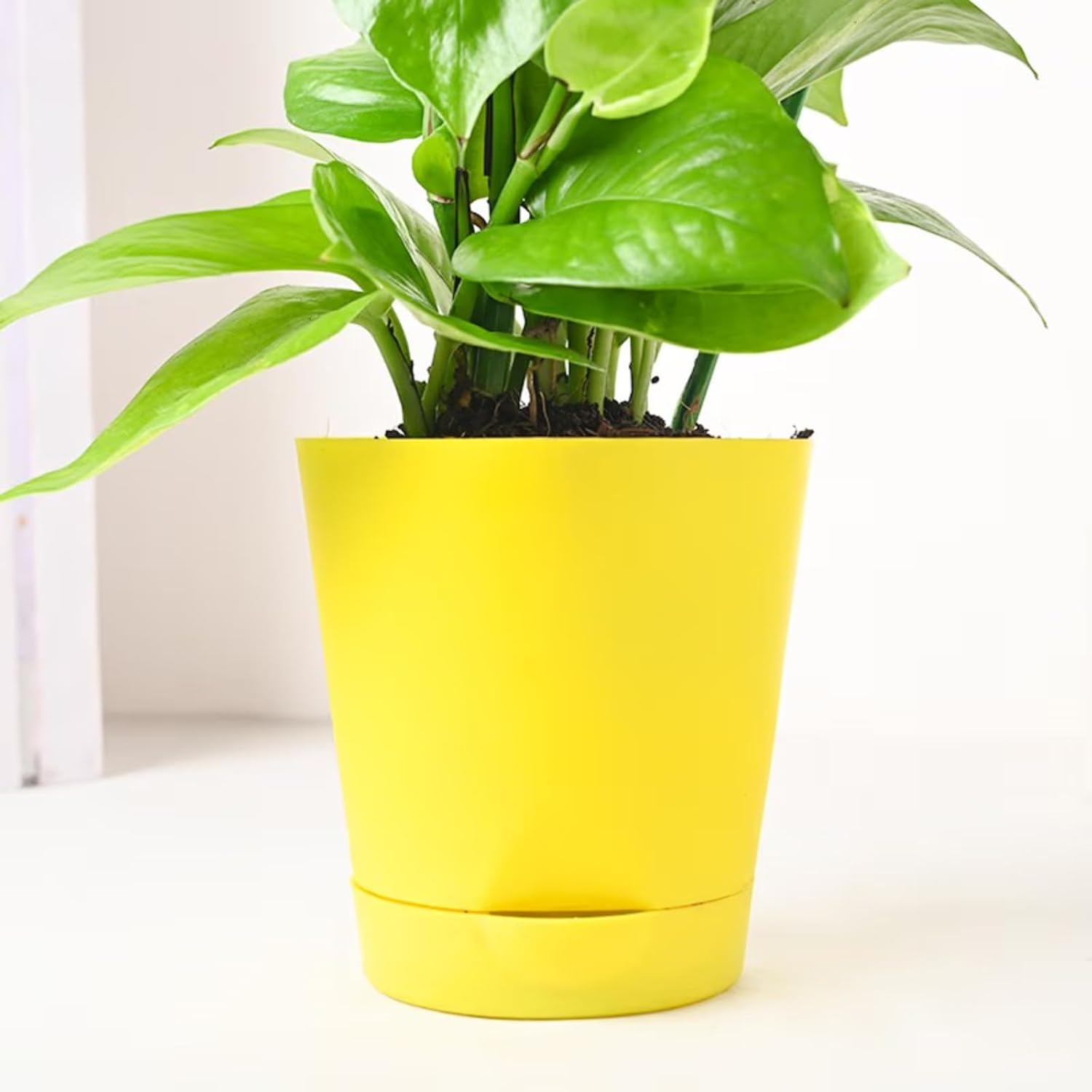 The plants come potted in a yellow tapper self-watering pot which lets you stay worry-free on care forefront of the plant.