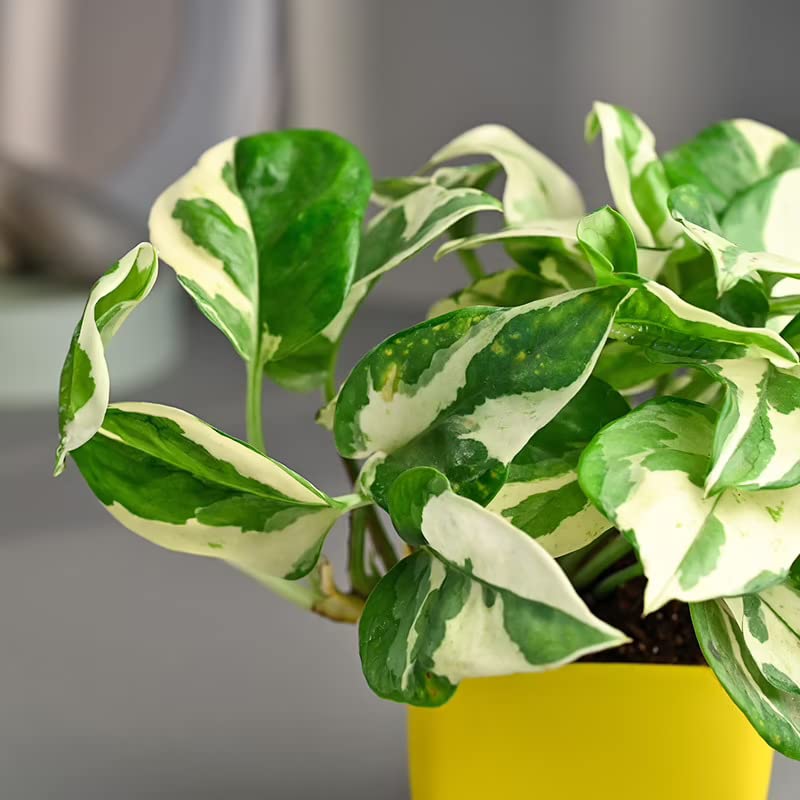 FlowerAura Decorative Set Of 2 Airpurifying (Jade & White Pothos Plant) Live Indoor Plant With Plastic Pot Vase For Living Room, Table Corner, Bedroom, Balcony, Office/Home Decor (Same Day Delivery)