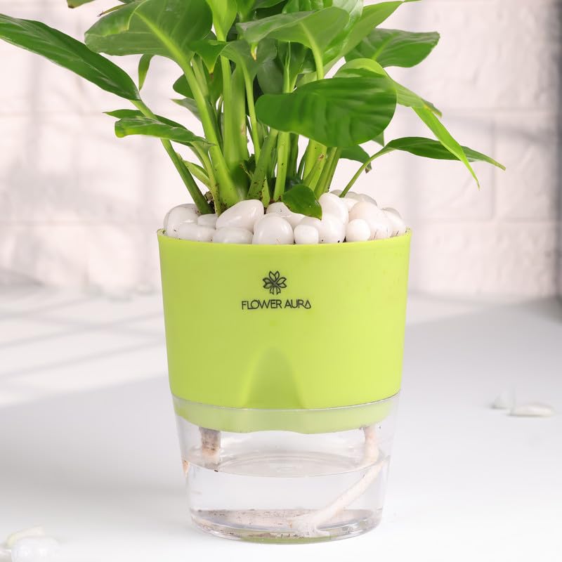 💧 Green Self-Watering Pot – Stylish and Low-Maintenance: Designed for ease of care, the vibrant green self-watering pot ensures the plant receives just the right amount of water, making it perfect for beginners or busy lifestyles.