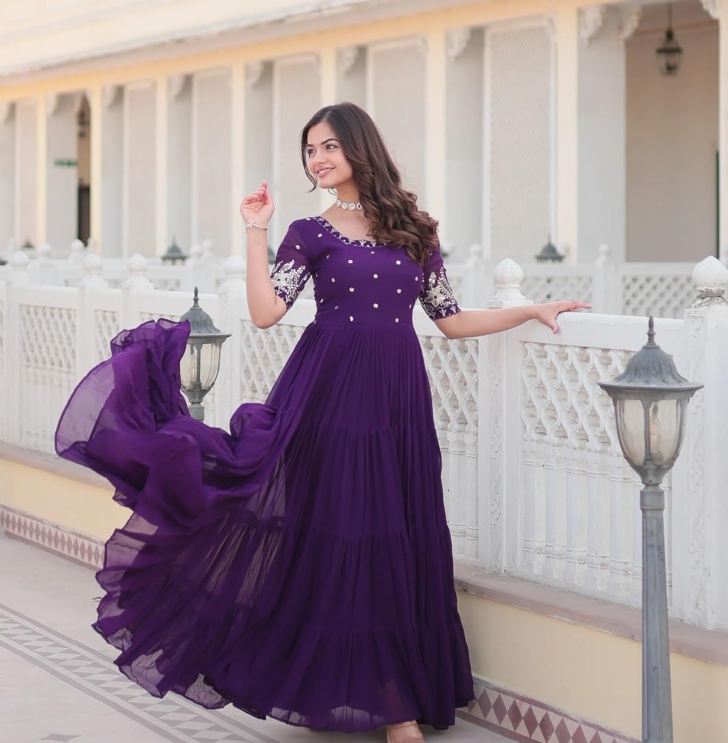 Royal Purple Anarkali Dress with Intricate Embroidered Sleeves