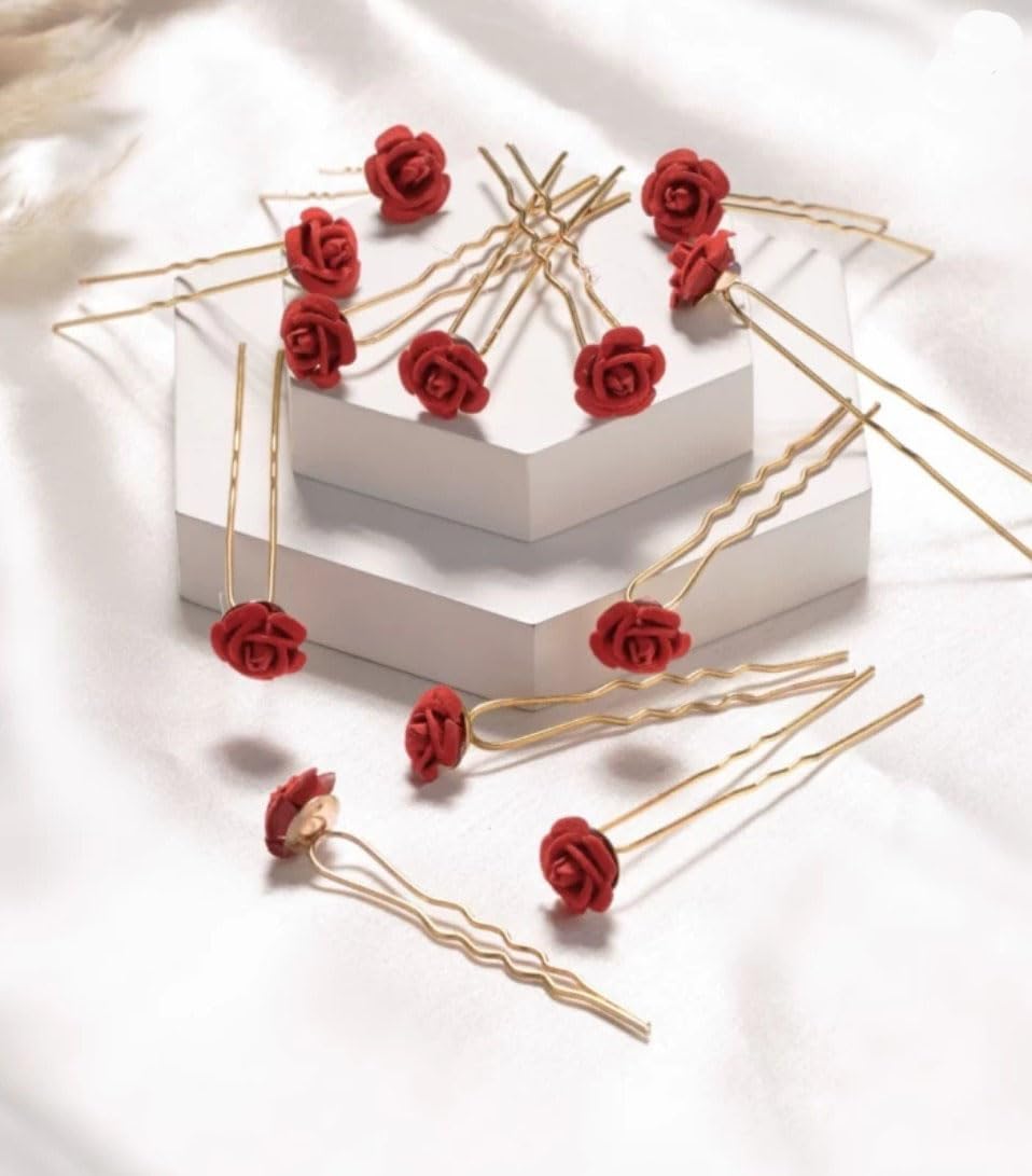 ✨ Function: Small Red Flower U-Pins help secure & stabilize hairstyles, making them perfect for updos, buns & intricate bridal looks.