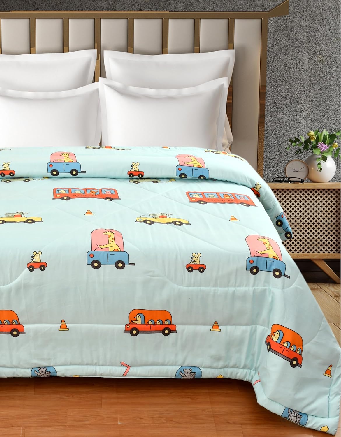 FRESH FROM LOOM Double Bed Cartoon Printed Blankets for Kids|Dohar for Kid Boys & Girls|Glace Cotton Soft Children Comforters|Summer & Winter Blankets (90×100 Inches|King Size|Bus Aqua)| TC – 144