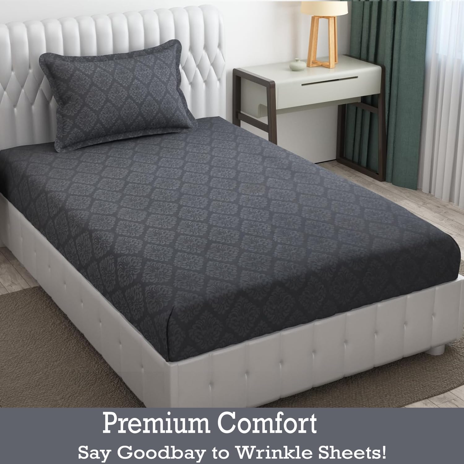 BED SHEET PATTERN: Dimas Designer Bed Cover | Size (LxB): Bedsheets – 60×90 Inch or 150 cm x 225 cm, Pillow Cover- 18×28 inch or 45 X 70 cm, BEDSHEET MATERIAL: Microfiber | Thread Count: 144 | Package Contents: 1 Single Bedsheets with 1 Pillow Cover