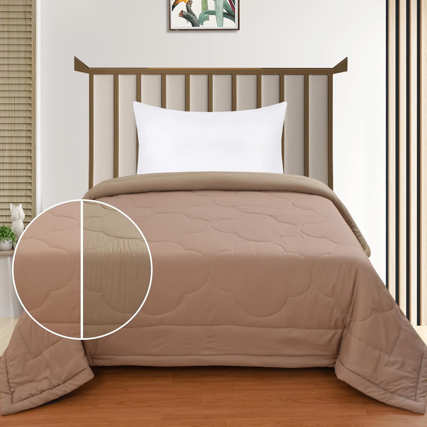 Package Content- 1 Reversible Comforter (Single Bed ,150x225cm), 200 GSM Siliconized Polyester filling. Premium Reversible Comforter: Enjoy the best of both worlds with the reversible design of this quilt. Featuring solid plain colors on each side, you can easily switch up your bedroom’s look. The high-quality microfibre material ensures that both sides retain a soft, luxurious feel.