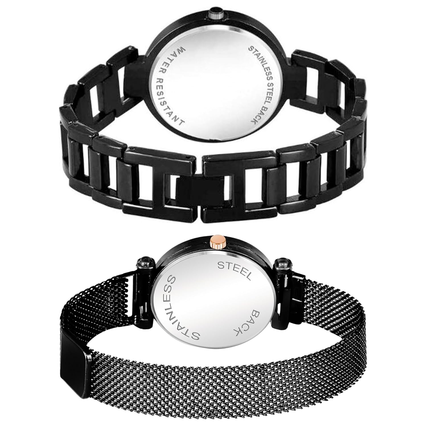 FROZIL Analog Black Dial Stainless Steel Magnetic Belt Watch Combo for Womens and Girls Pack of 2