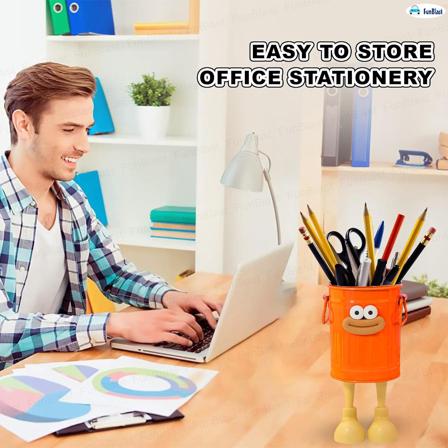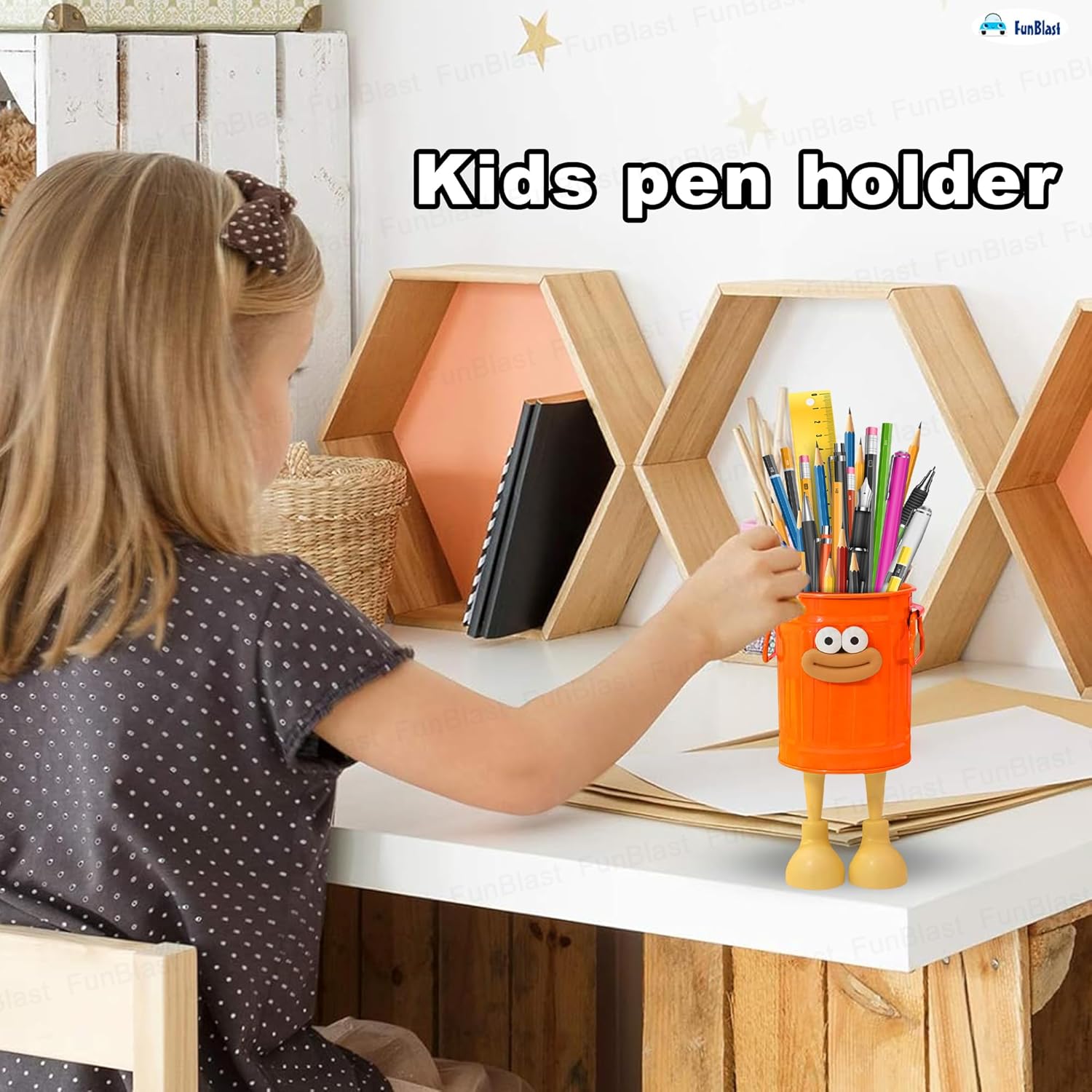 Stationary Organizers Stationery Holder – FunBlast kawaii pencil holder can place pencils, pens, rulers, erasers, scissors and other office stationery.Material – FunBlast pen stand holder is made of non-toxic material can be easily kept in bags for carrying purpose.Dimension – H: 19 Cm, L: 9.5 Cm, W: 9.5 CmPen Holder for Desk – This pen holder is made of non-toxic wooden material, well-polished and very colorful in design. The vivid and bright colors of this pen stand attract a lot.Best Gift – One of the best gift stationary items for book reading lovers. An Ideal gift for the birthday party, return gift or on any occasion